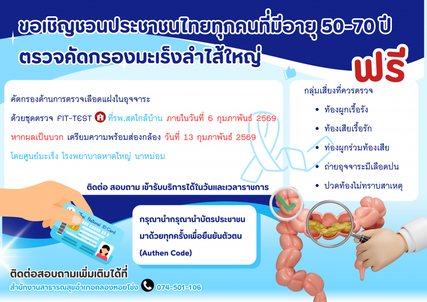 ขอเชิญชวน ตรวจคัดกรองมะเร็งลำไส้ใหญ่